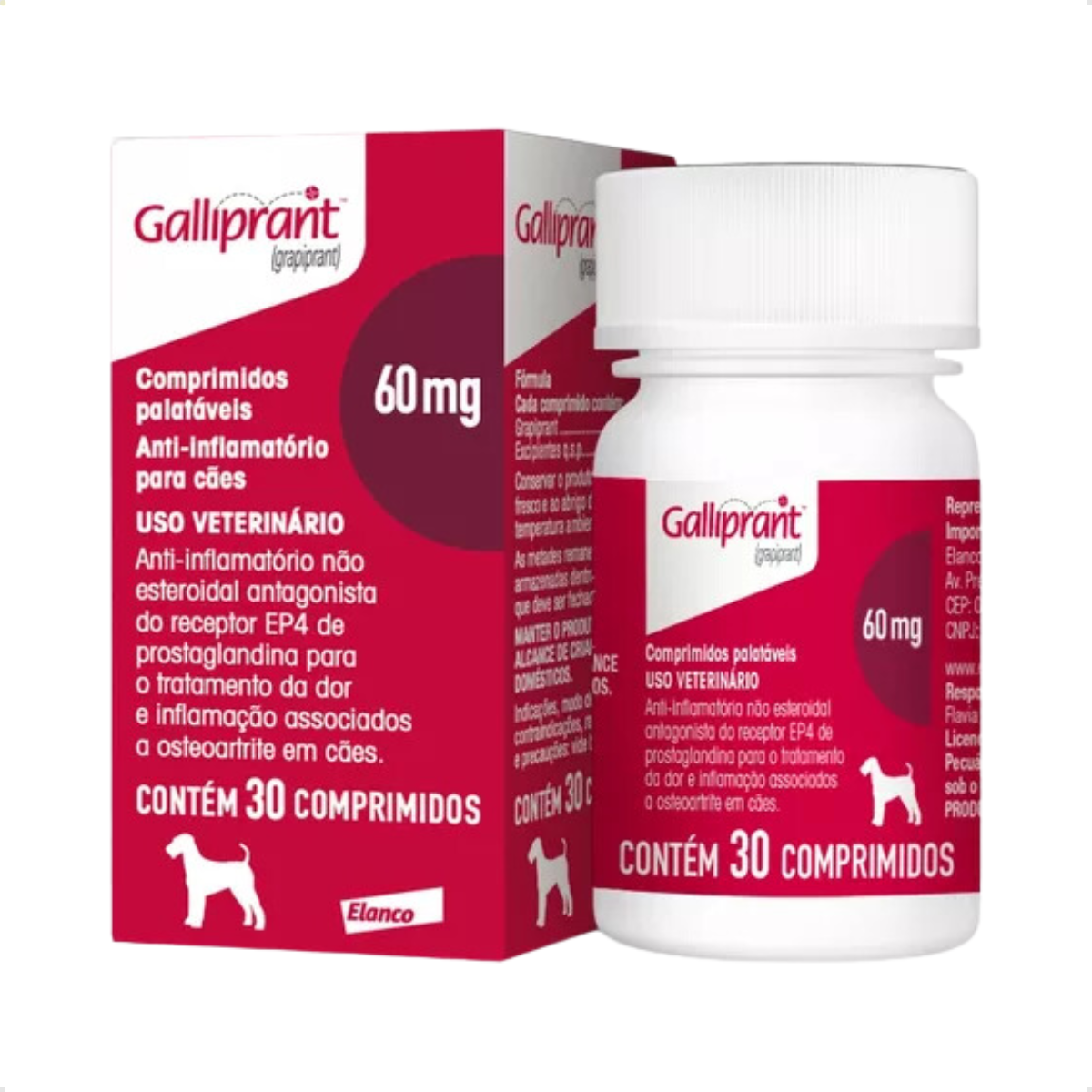 Galliprant 60mg é um anti-inflamatório desenvolvido pela Elanco, projetado para aliviar dores e inflamações relacionadas à osteoartrite em cães. Este medicamento ajuda a melhorar a qualidade de vida do animal, reduzindo limitações causadas por dores articulares e musculares. O Galliprant 60mg é formulado para auxiliar tanto em tratamentos de curto quanto de longo prazo, contribuindo para a manutenção da mobilidade e bem-estar do seu pet.