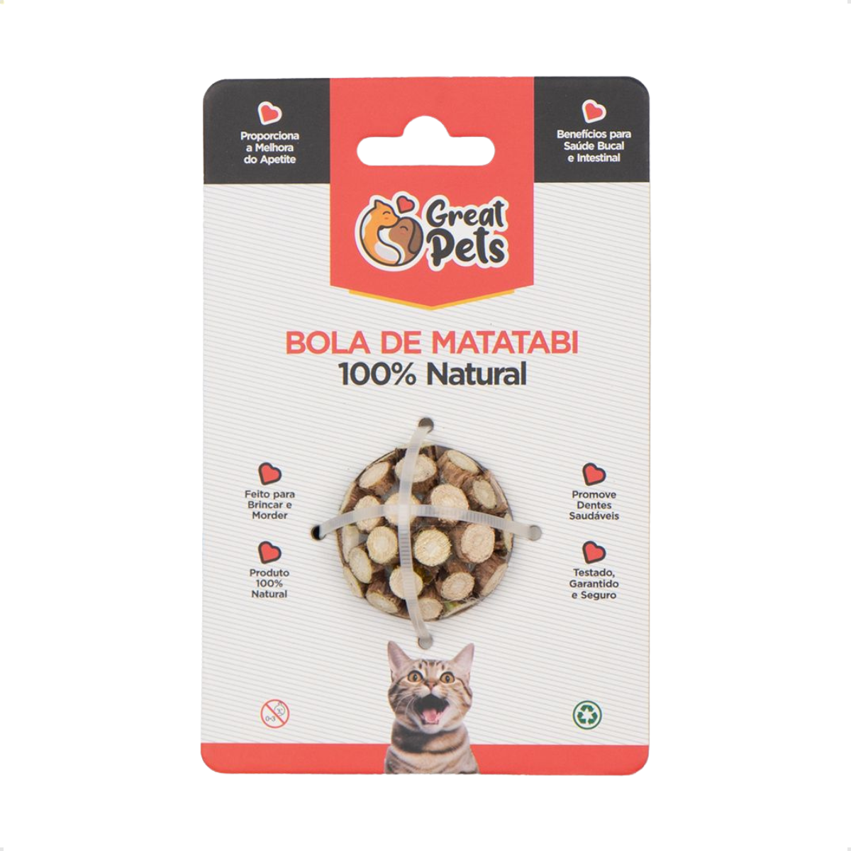 A bolinha conta com catnip, que ajuda a estimular o instinto de caça, promovendo entretenimento ao longo do dia. Além disso, o uso do matatabi pode auxiliar no alívio do estresse, estimular o apetite e contribuir para a higiene bucal do felino durante a mastigação.