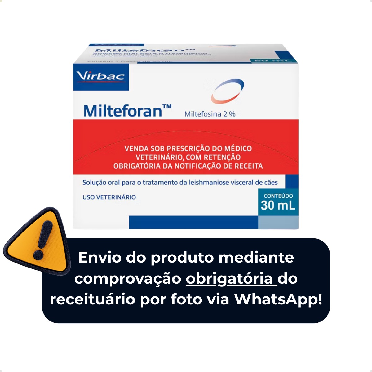 O Milteforan™ da Virbac é o único medicamento aprovado no Brasil para o tratamento da Leishmaniose Visceral Canina (LVC). Desenvolvido com a molécula inovadora miltefosina, ele oferece ação leishmanicida e propriedades imunomoduladoras, ajudando a controlar a doença, reduzir a carga parasitária e melhorar a qualidade de vida do seu cão. Sua formulação em solução oral, administrada uma vez ao dia por 28 dias, garante praticidade e alta adesão ao tratamento. Seguro para rins e fígado, é indicado sob prescrição veterinária e deve ser acompanhado de medidas de controle contra o vetor.